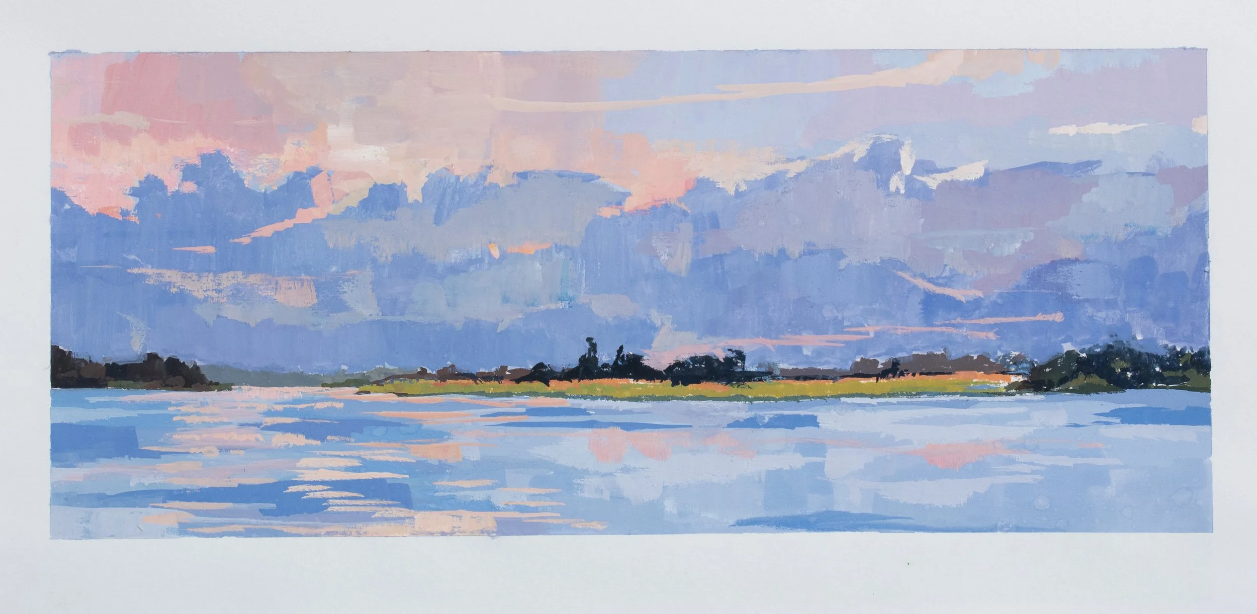 Slow Motion Clouds, Gouache on Paper, 6" x 12", 2024