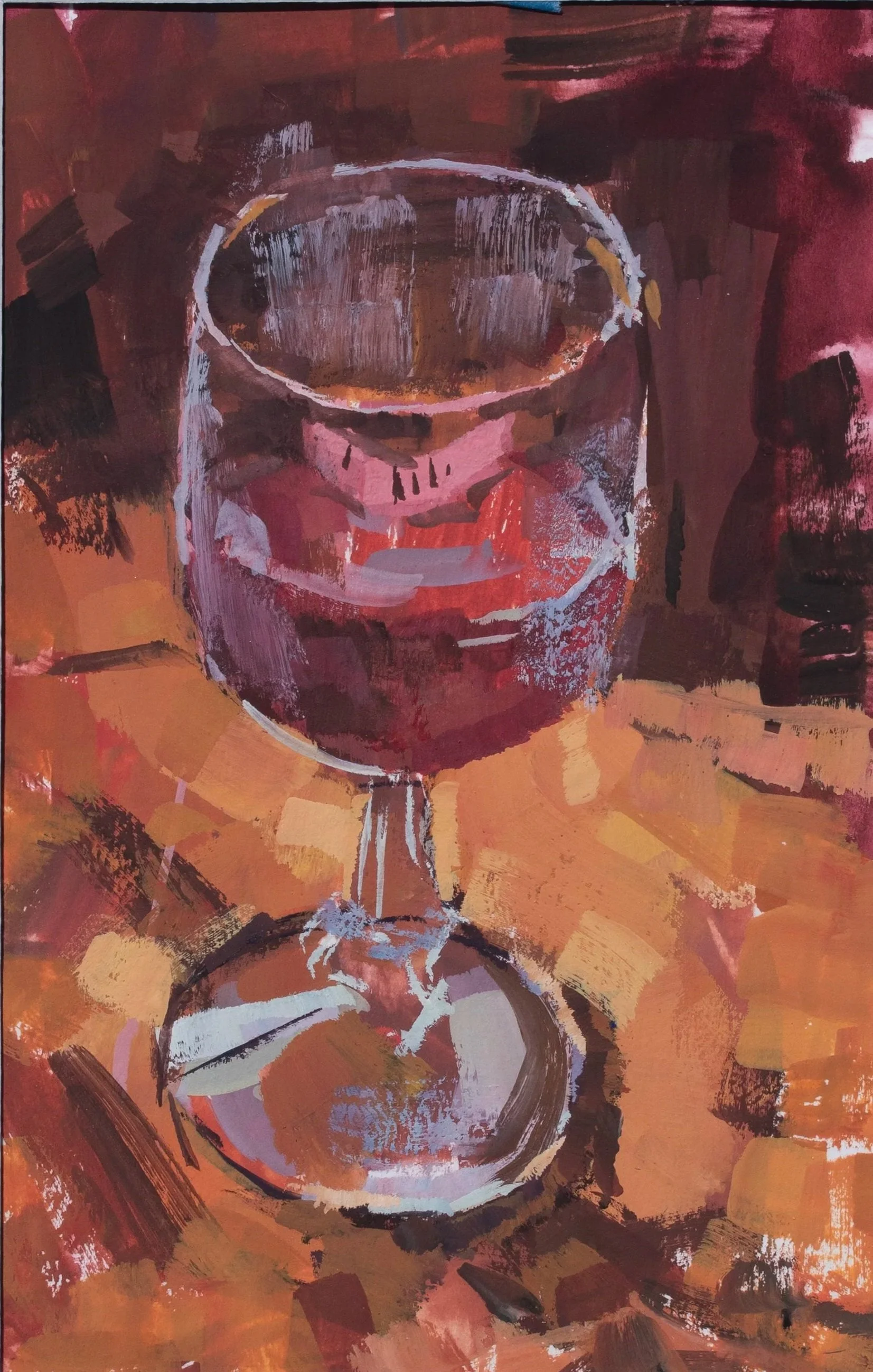 The Corner Booth, Gouache on Paper, 6" x 4", 2025