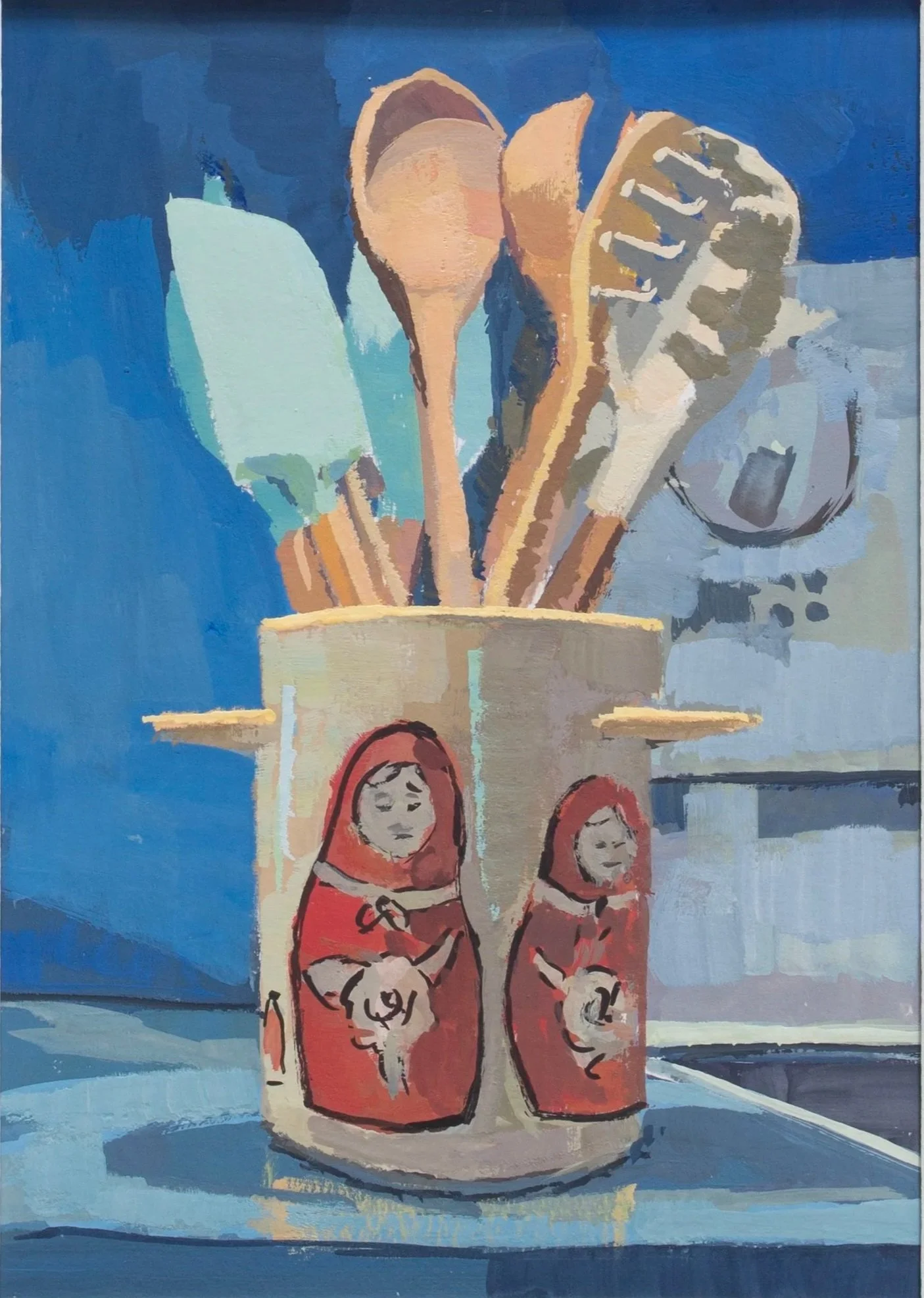 Morning Routine, Gouache on Paper, 7" x 5", 2025